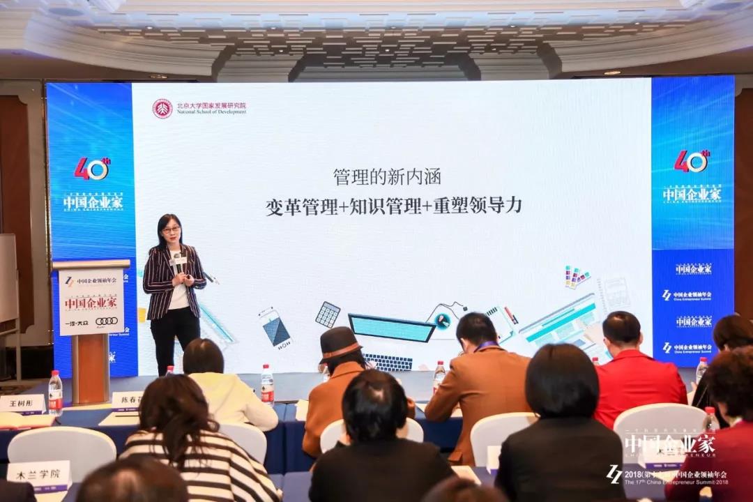 在這場名為「快速成長期的管理變革」的論壇上,她告誡企業家們,今天的組織管理正變得更加復雜、價值更加多元、更加網絡化,管理者像過去一樣僅僅做好計劃、組織、領導、控制這些傳統的工作是遠遠不夠的,必須還要在此基礎上做好變革管理、知識管理跟重塑領導力這三件事情,這樣才能成功應對這些快速的變化。
